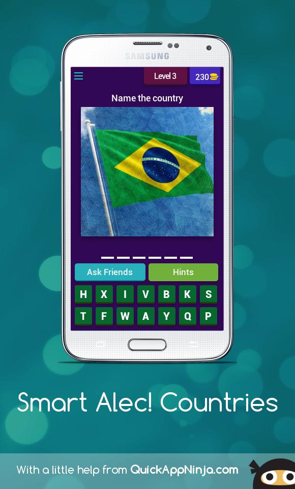 Jogos de palavras nunca podem ser tão emocionantes, a menos que seja sobre países estrangeiros. ' Smart Alec! Countries testarão seu conhecimento se você for um ALEC inteligente o suficiente ou não! Os usuários terão que adivinhar o nome de bandeiras, moedas, edifícios famosos, pontos de referência e muito mais de diferentes países.